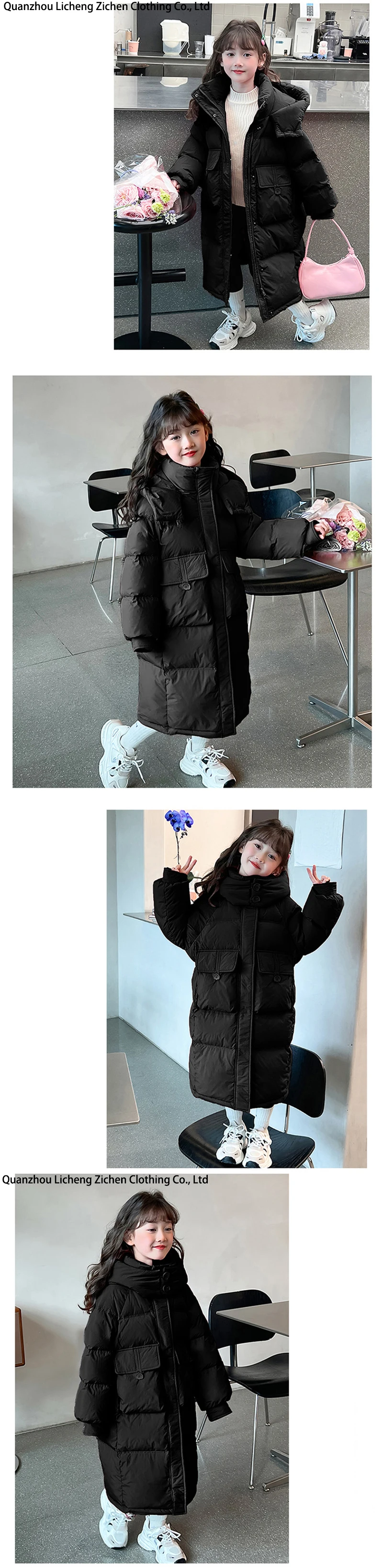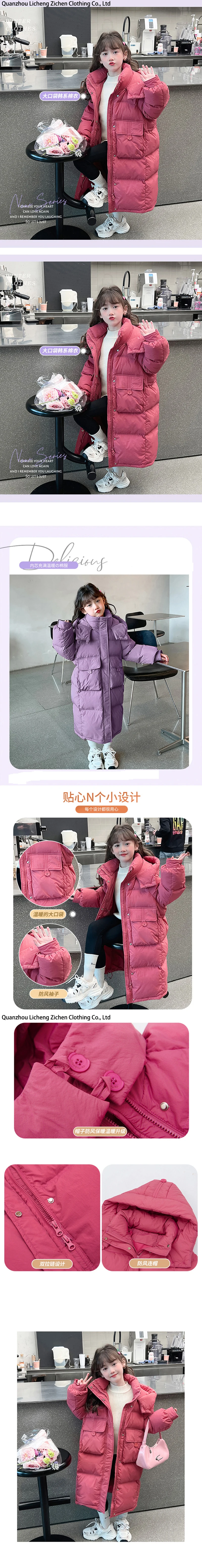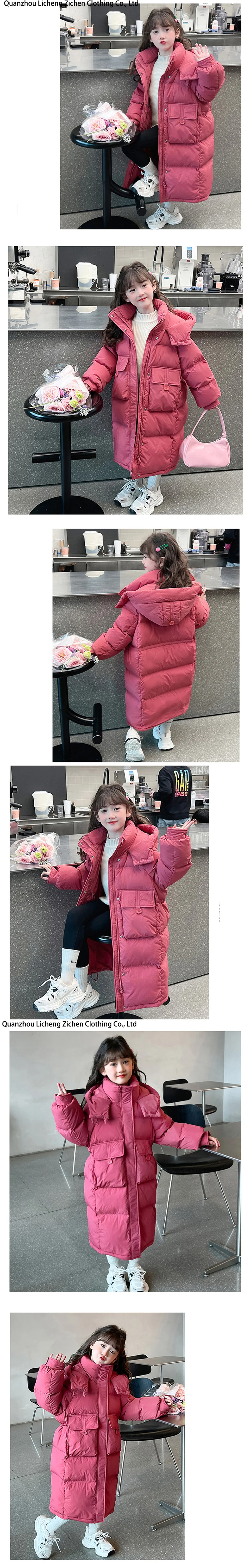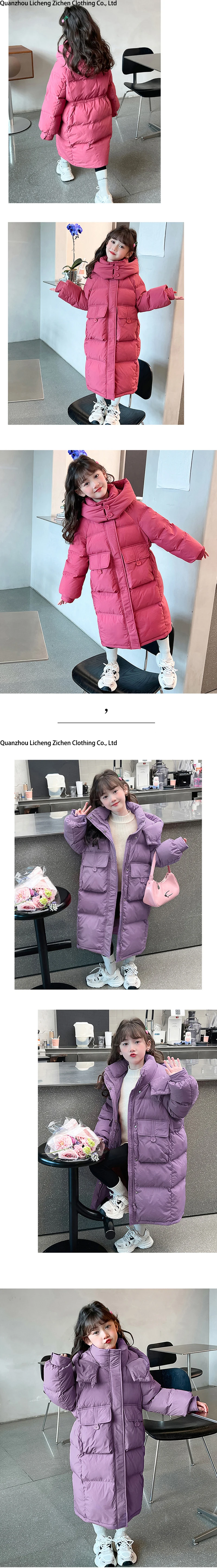 2024 New Extra Long Warm Children's Padded Jacket Girl Solid Color Cotton Coat Teens Parkas Hoodie Kids Clothing