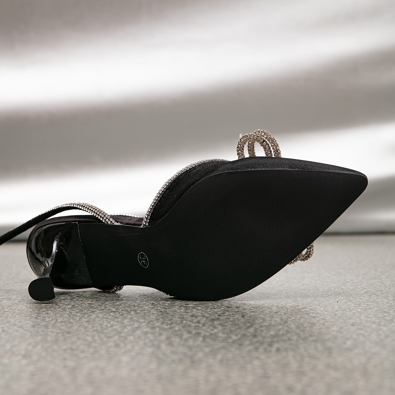 [Rhinestone Heels] Rhinestone High Heels | Women's Solid Color Slingback Pointed Toe Pumps, Ankle Straps, Wedding Dress Heels for Music Festival
