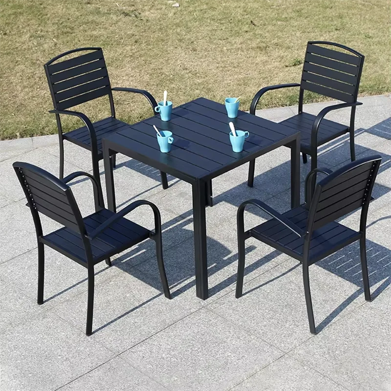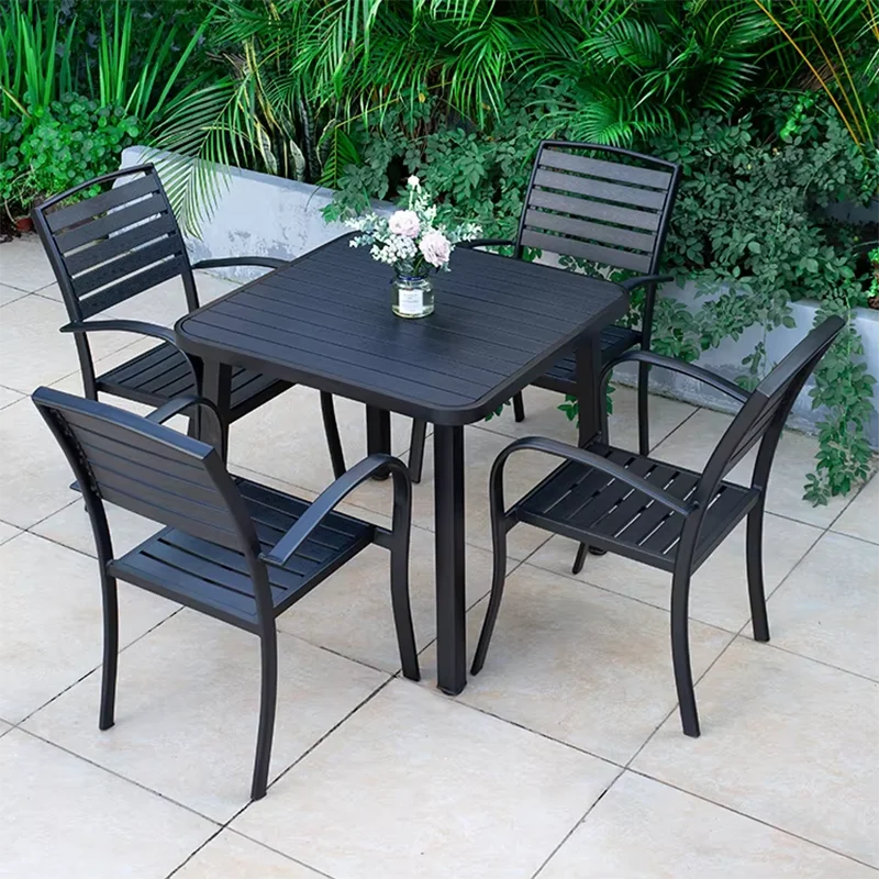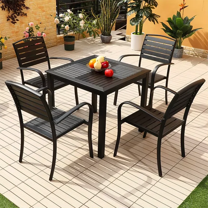 Round/Square Outdoor Table Garden Table Modern Dining Wood-plastic Table Outdoor Leisure Courtyard Villa Long Table